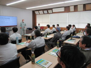 浜松本社にて建設工事4現場合同で「建設従事者教育」を建設業労働災害防止協会静岡県支部より講師2名を招き開催しました。取引先を含め20名の参加で座学・実技訓練を本社にて行いました。本教育は厚生労働省および国土交通省が実施を推奨しており最新の知識及び豊富な経験を有する労働安全衛生法令の専門家が不安全行動等の防止を目的とした教育となっています