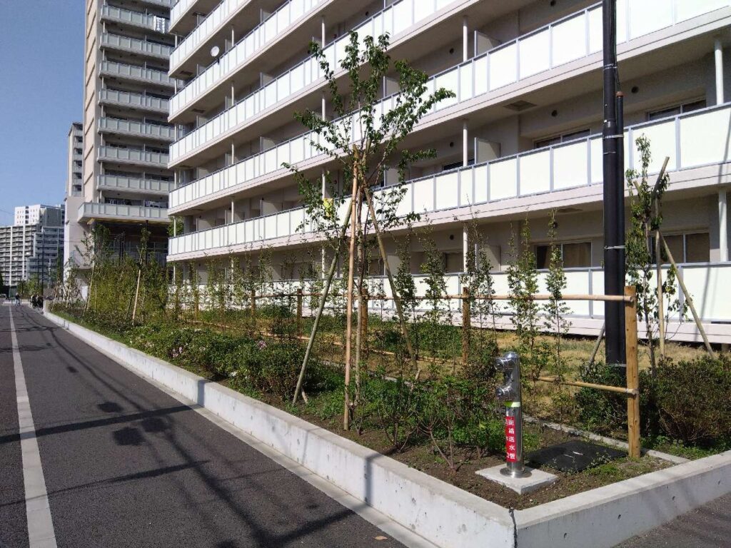 都営辰巳一丁目団地の建替えに伴う緑地整備工事 緑化面積2,330㎡ 大高木8本・高木104本・中木596本・低木2107株を施工 居住している住民に配慮しながらし、コミニュケーションをし施工をすすめた 本工事は 『令和7年度東京都住宅政策本部優良工事等本部長賞』 を受賞しました