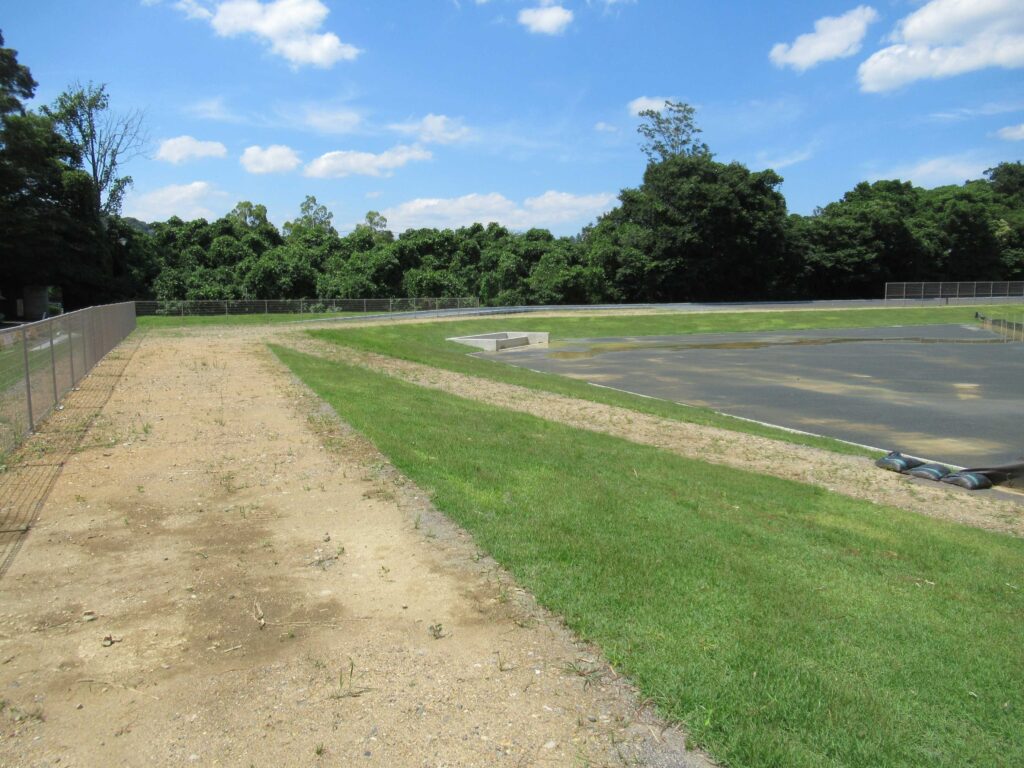 多目的広場および雨水貯留地を目的とした公園施設整備工事。整備面積は1.65ha。